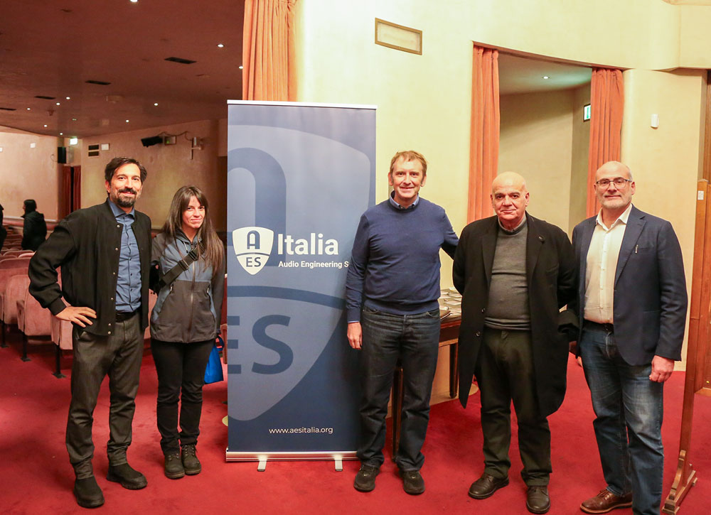 Da sx, alcuni dei membri del consiglio direttivo AES Italia: Lorenzo Ortolani, segretario; Francesca Ortolani, vicepresidente; Daniele Ponteggia, presidente; Carlo Zuccatti e Umberto Zanghieri, tesoriere.