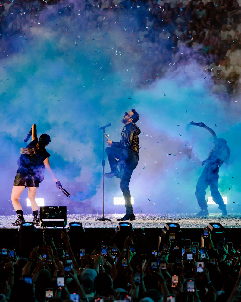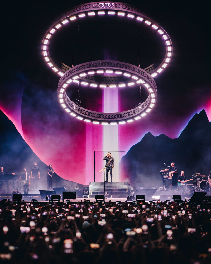 Anche sul fronte luci l’attesa è stata pienamente ripagata. Con Mamo Pozzoli alla direzione, la progettazione si integra perfettamente con l’universo visivo dello show, in una sinergia ben calibrata con i contenuti video. Come lui stesso afferma: “Se fai la guerra al video, perdi”. La chiave è trovare l’armonia con il contesto, ed è esattamente ciò che è accaduto.