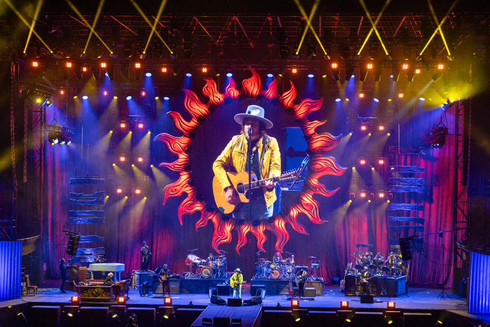 Nel disegno originale di Zucchero puoi trovare: 76 Ayrton Cobra intervallati con 76 Chauvet Color Strike; 40 Robe iForte LTX, con l’aggiunta di altri 8 – 6 posizionati in alto sul perimento dell’Arena e 2 sul palco – che usiamo come seguipersona. Poi abbiamo 40 Maverick Storm 3 BeamWash per dare colore al palco, oltre a 24 classici Claypaky K25, posizionati nella cornice del sole; questi sono stati sagomati all’interno della scenografia e quindi sono intoccabili: finché ci sarà il sole, ci saranno sempre. Poi abbiamo montato gli SGM P-5 per il fondale e per illuminare i dettagli della scenografia. Zucchero è molto attento ed esigente sugli elementi che compongono la scenografia: è sempre stato molto presente nell’osservare il mio lavoro, e mi ha dato anche delle opinioni sui vari risultati.